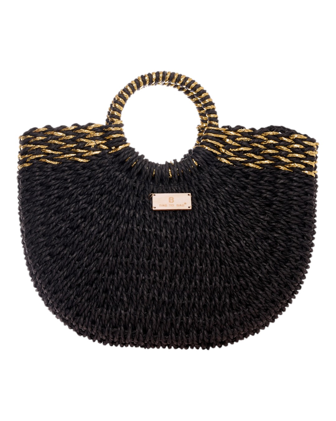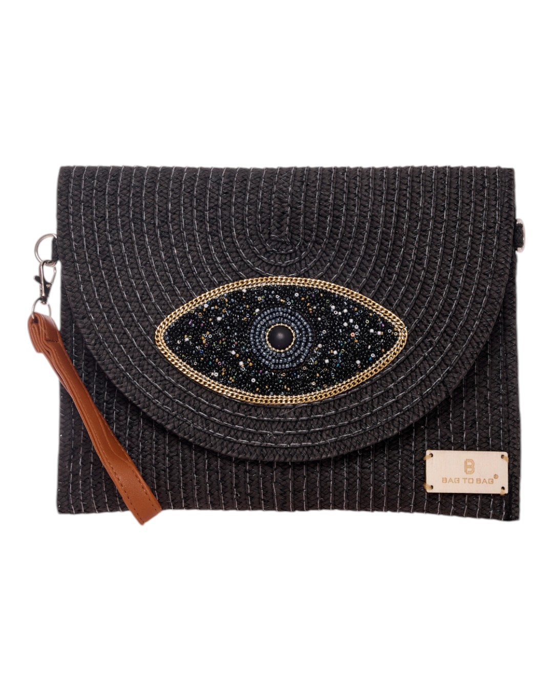 Ψάθινος φάκελος χειρός. Αποτελείται από έναν κύριο χώρο που κλείνει πρώτα με φερμουαρ κ έπειτα με καπάκι που διαθέτει μαγνητικό