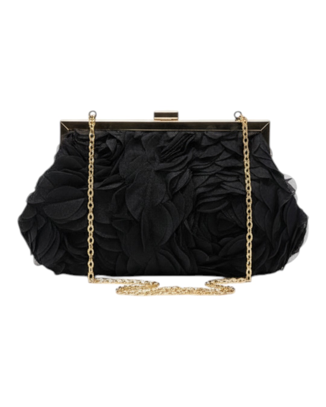 Το σώμα της τσάντας είναι διακοσμημένο με ανάγλυφο ύφασμα σε σχήμα λουλουδιού, δημιουργώντας ένα ιδιαίτερο και κομψό αποτέλεσμα.